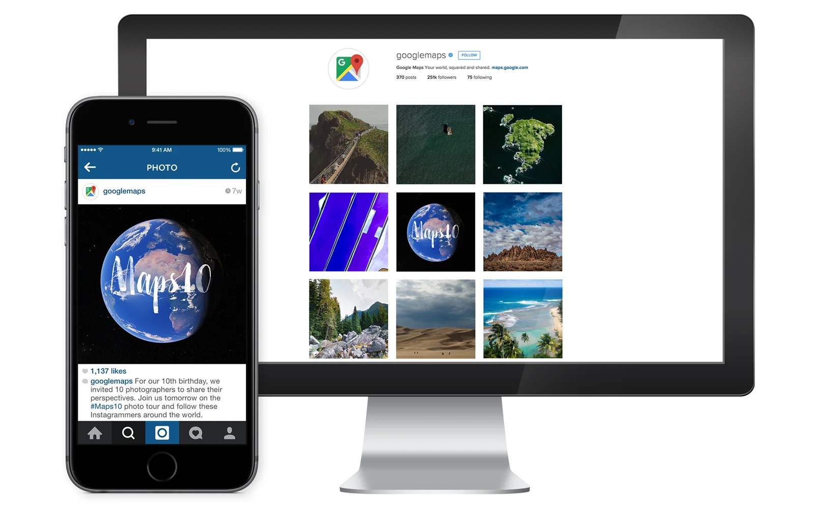 To launch the #Maps10 campaign and hashtag, we partnered with 10 photographers who had a combined audience reach of 3.7M followers. Each one announced his or her takeover on their own channels—which we amplified on ours—and published bespoke content on both our Instagram and Google Maps itself.